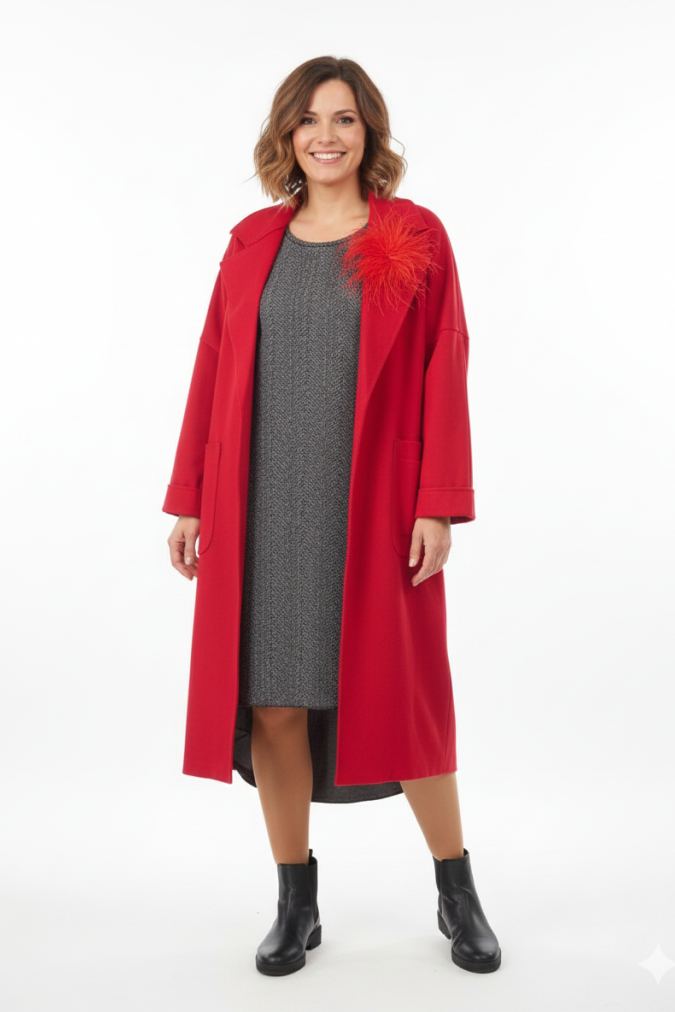 MISURE 40/44:Circonferenza seno 100 cm, circonferenza fianchi 138 cm, lunghezza dalla spalla all'orlo davanti 90 cm, all'orlo dietro 113 cm.