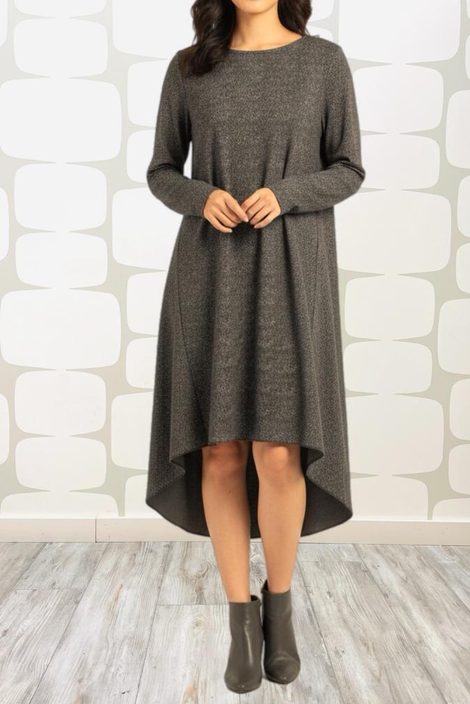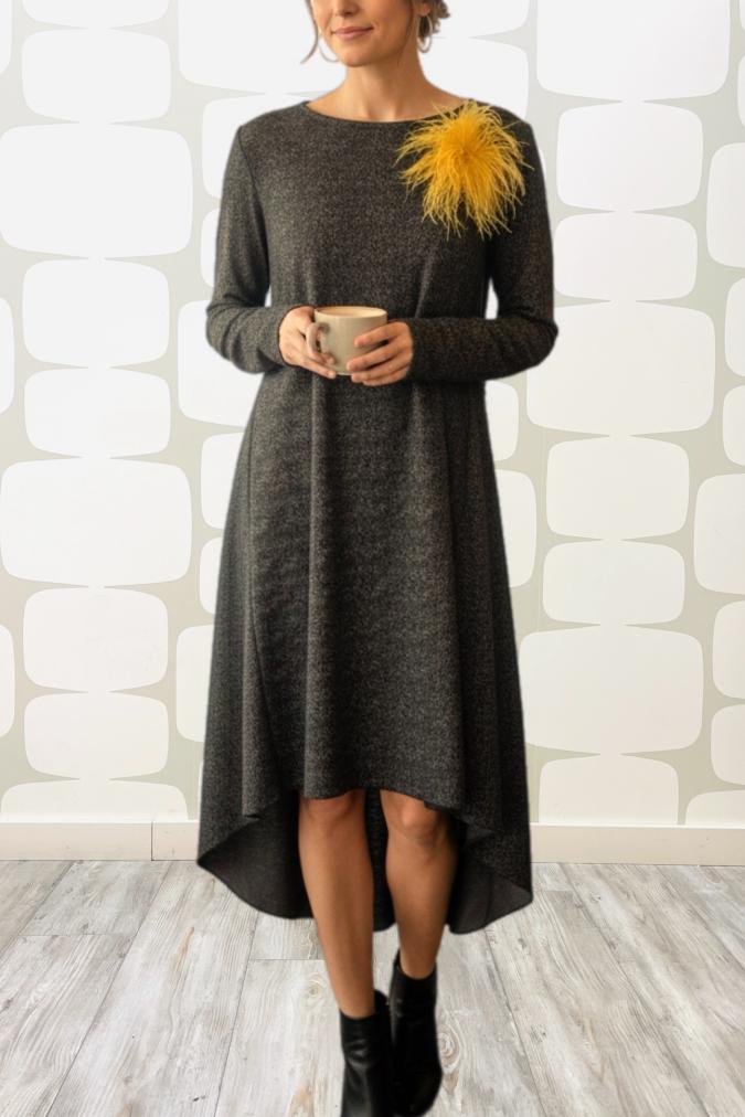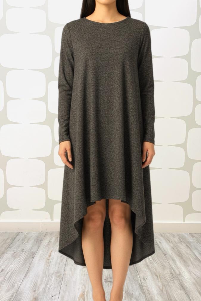 Abito in misto viscosa dalla linea svasata con orlo asimmetrico più lungo sul dietro.