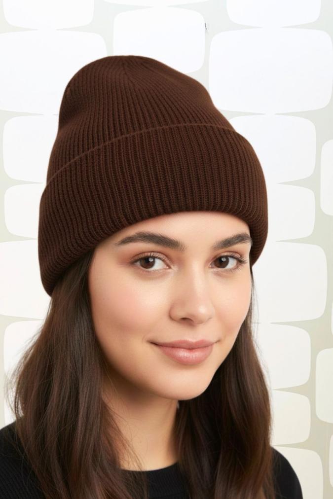 Cappello in misto lana angora e cachemire con tipico risvolto largo.