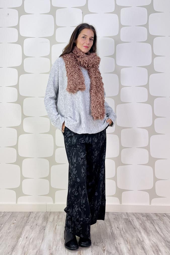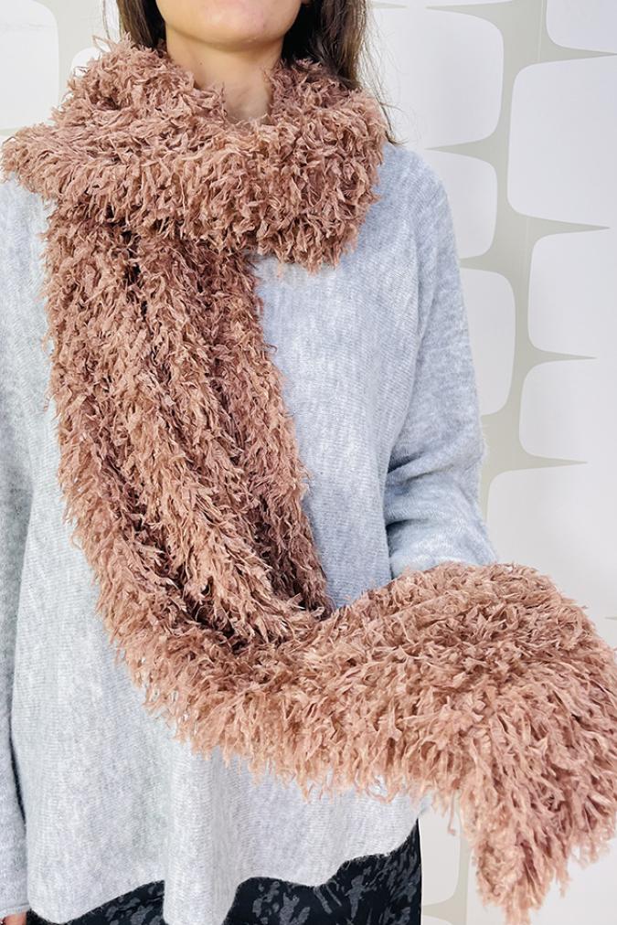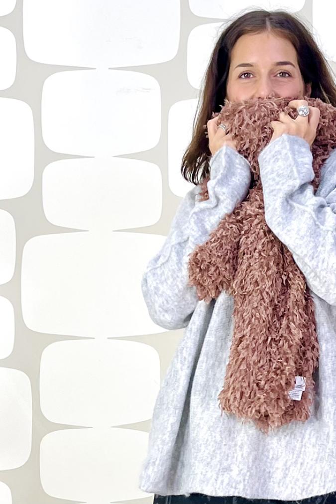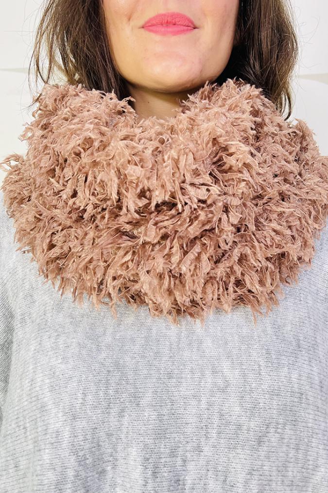Confortevole, leggera e morbida dall'effetto piuma è la sciarpa in due colori: rosa cipria e petrolio.
