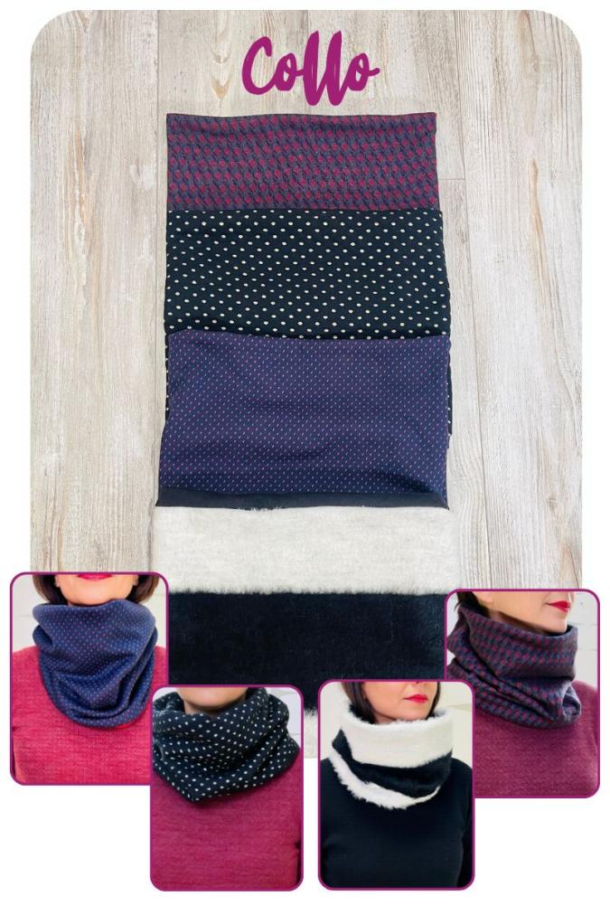 Scalda collo realizzato in stoffa mista calda e confortevole in varie fantasie e abbinamenti.