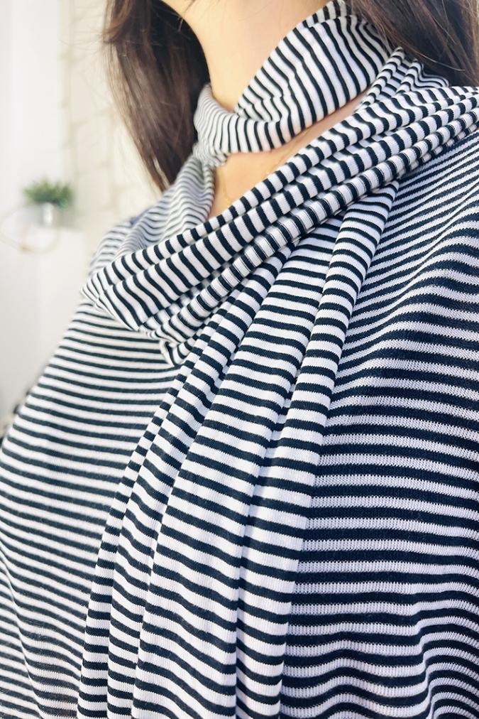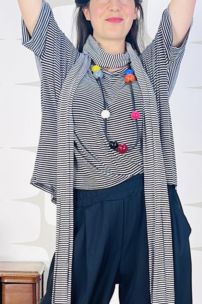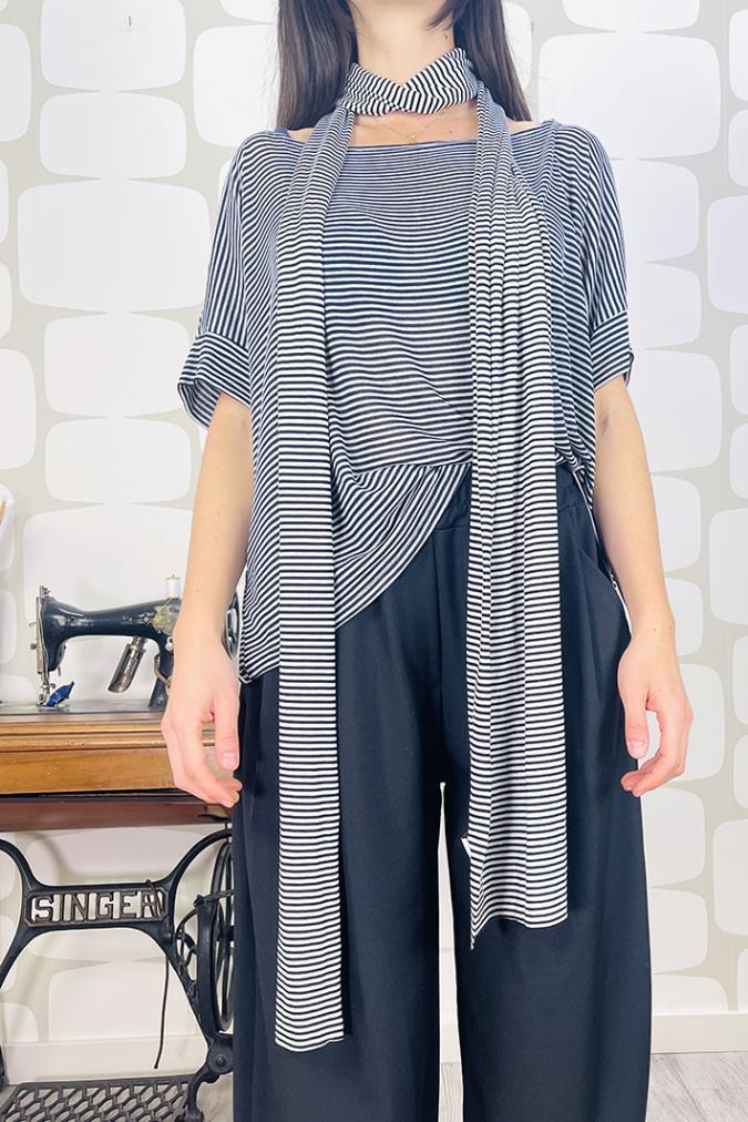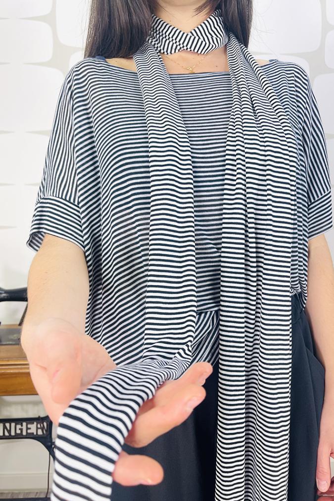 Sciarpina realizzata nella nostra sartoria in morbido jersey di cotone. Abbinala ai tuoi outfit per un look originale e dal gusto parisienne.