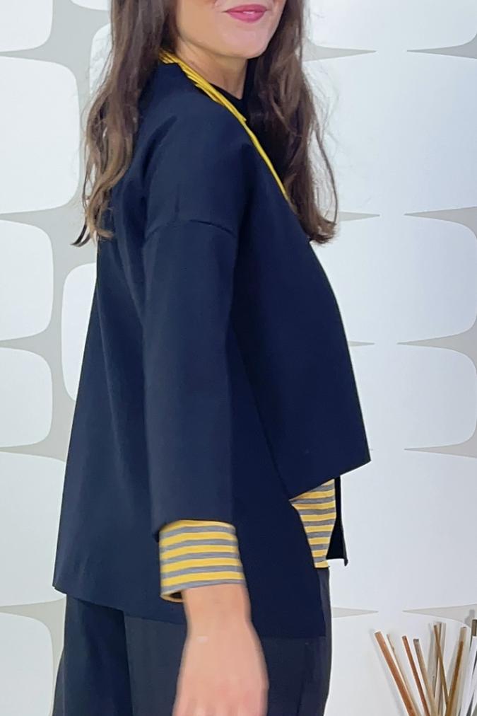 MISURE TG 48/52:Lunghezza spalla e manica 64 cm, circonferenza braccio 43 cm, circonferenza seno 130 cm, circonferenza vita 132 cm, circonferenza fianchi 142 cm, lunghezza dal centro davanti all'orlo 65 cm, lunghezza dal centro dietro all'orlo 70 cm.