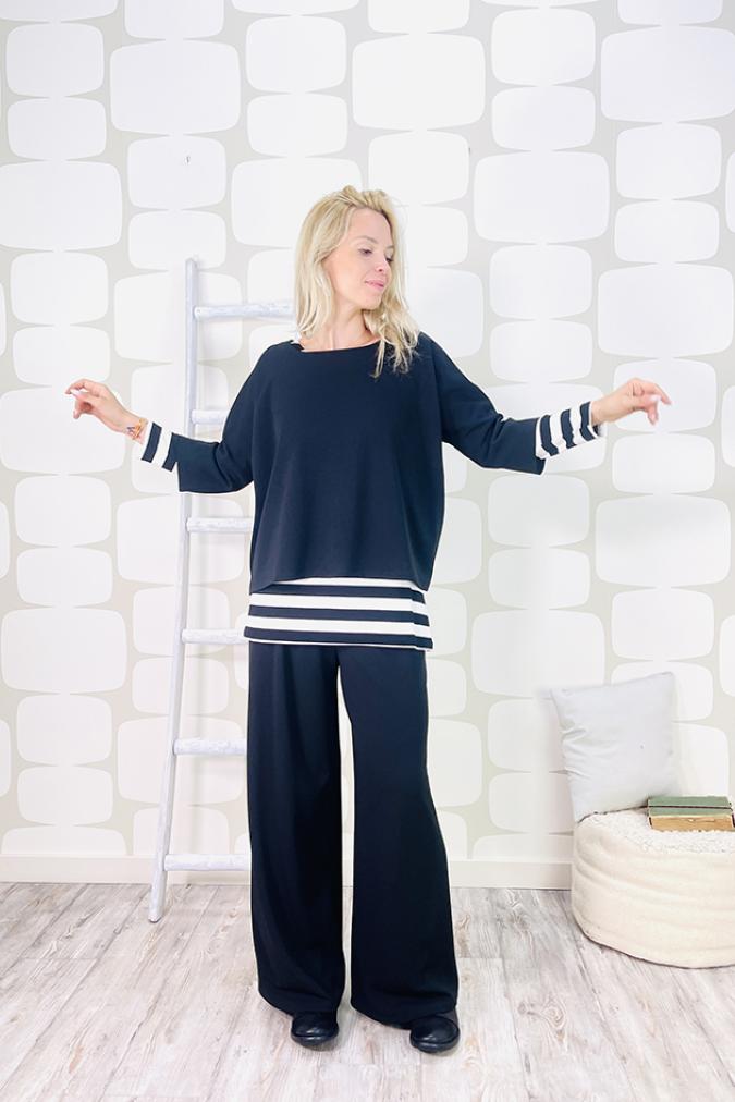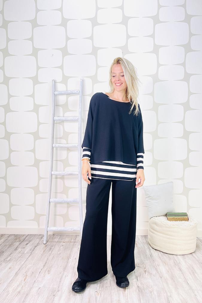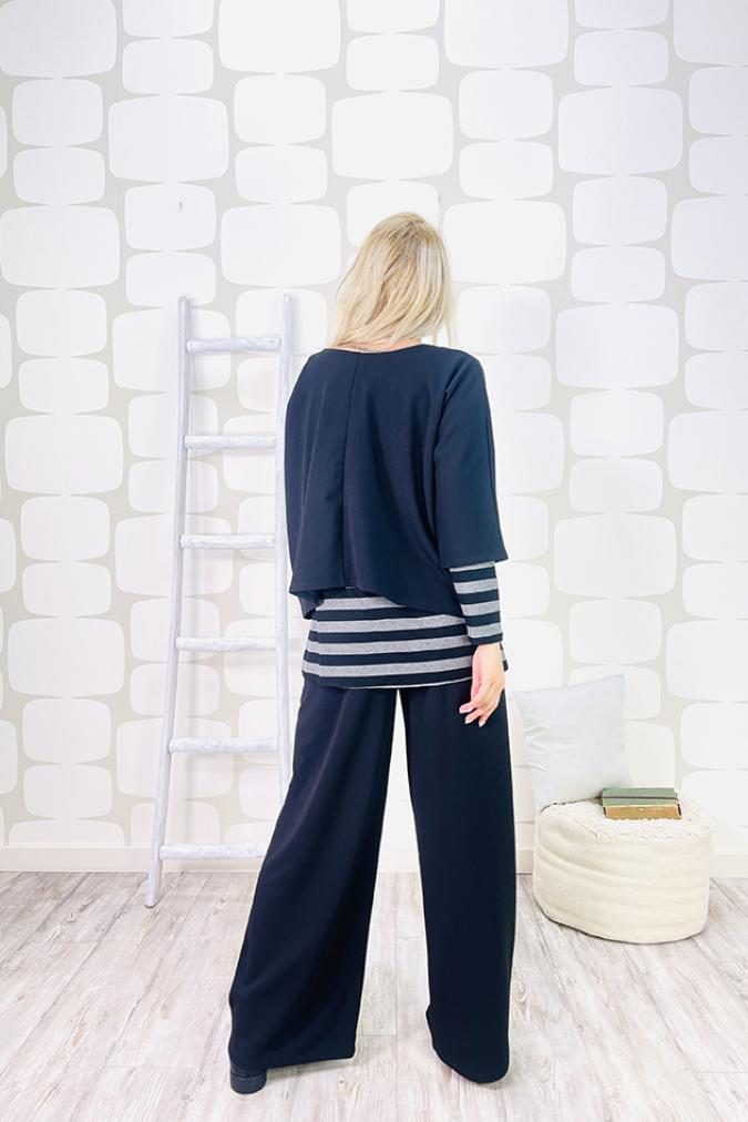 Maglia dalla linea leggermente svasata, manica 3/4 con spalla scesa priva di giromanica in morbido crepe misto viscosa che dona fluidità al capo donando un'ottima vestibilità. Indossala abbinata al pantalone e gioca con delle sovrapposizioni a contrasto di colore.