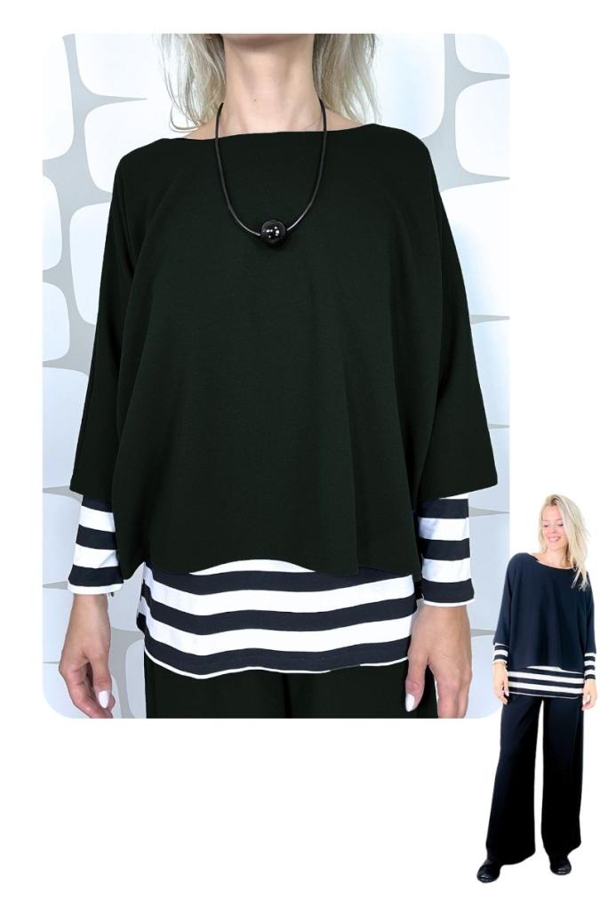 MISURE TG 40/46: Lunghezza spalla e manica 47 cm, circonferenza braccio 34 cm, circonferenza seno 122 cm, circonferenza vita 126 cm, circonferenza fianchi 128 cm, lunghezza centro avanti/orlo 47 cm, lunghezza centro dietro/orlo 48 cm.